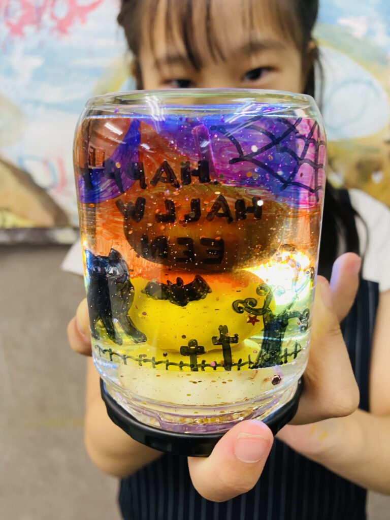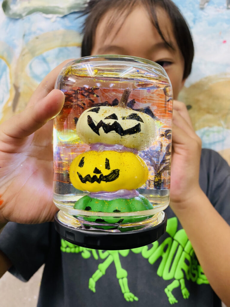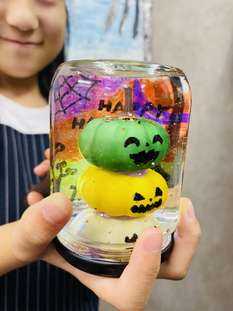 ハロウィンの手作りスノードーム体験!怪しく光るハロウィンナイトの世界をテーマにサイエンスアートクラスを開催しました!