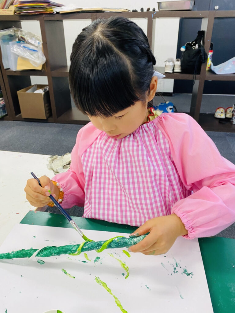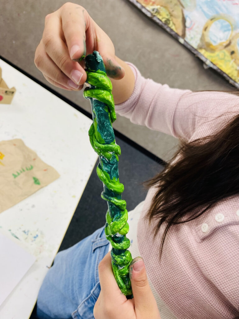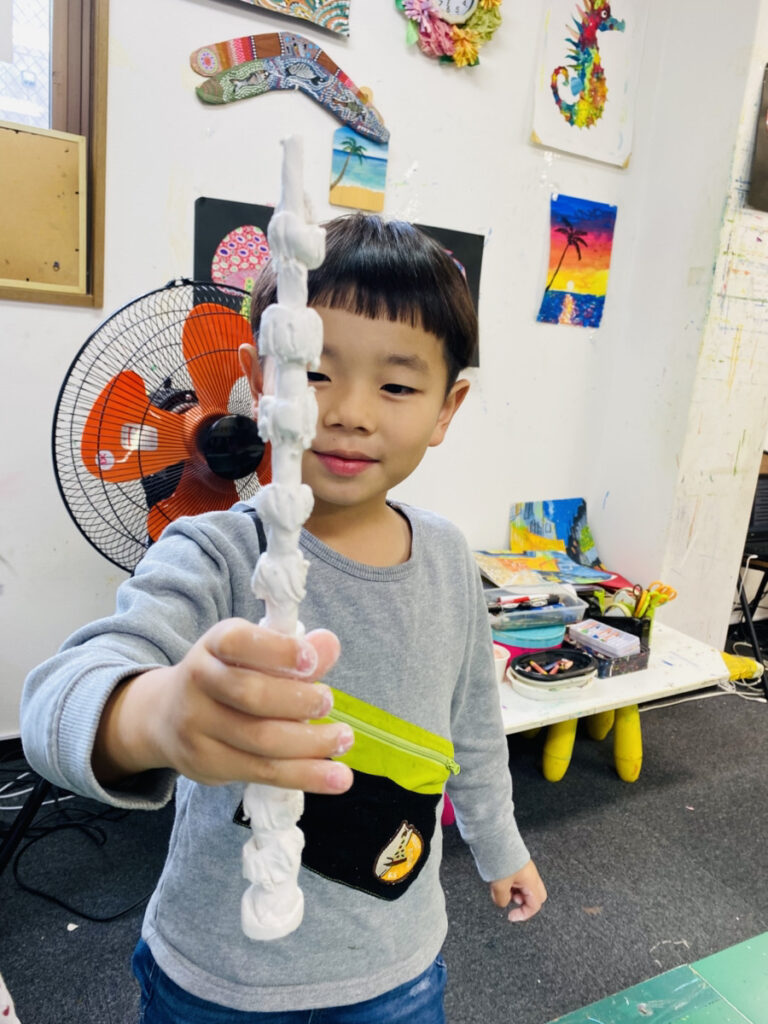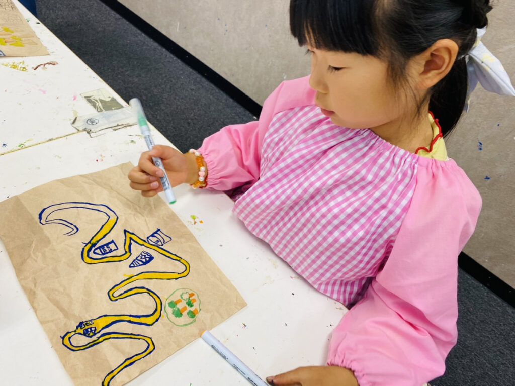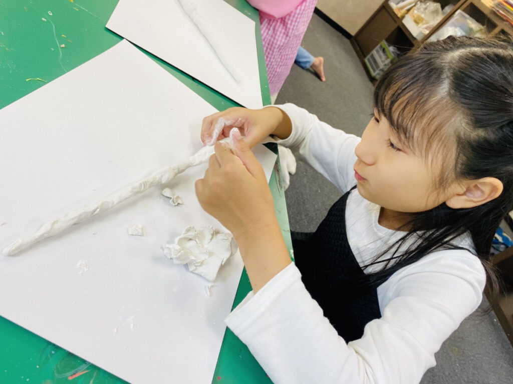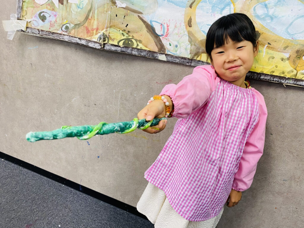 今回質感にこだわり固まると石のように固くなる「石粉粘土」を使用しました。どんな杖にするかイメージしながら菜箸に肉付けし、木の質感はアイス棒や箸を使って表現しました!アクリル絵の具で着色し、リアルな魔法の杖が完成です!魔法の地図も考えて描いてみましたね!ハリーポッターの登場人物になりきってぜひご自宅やおでかけにも魔法の杖を楽しんでください!▼