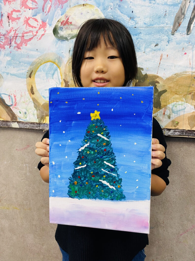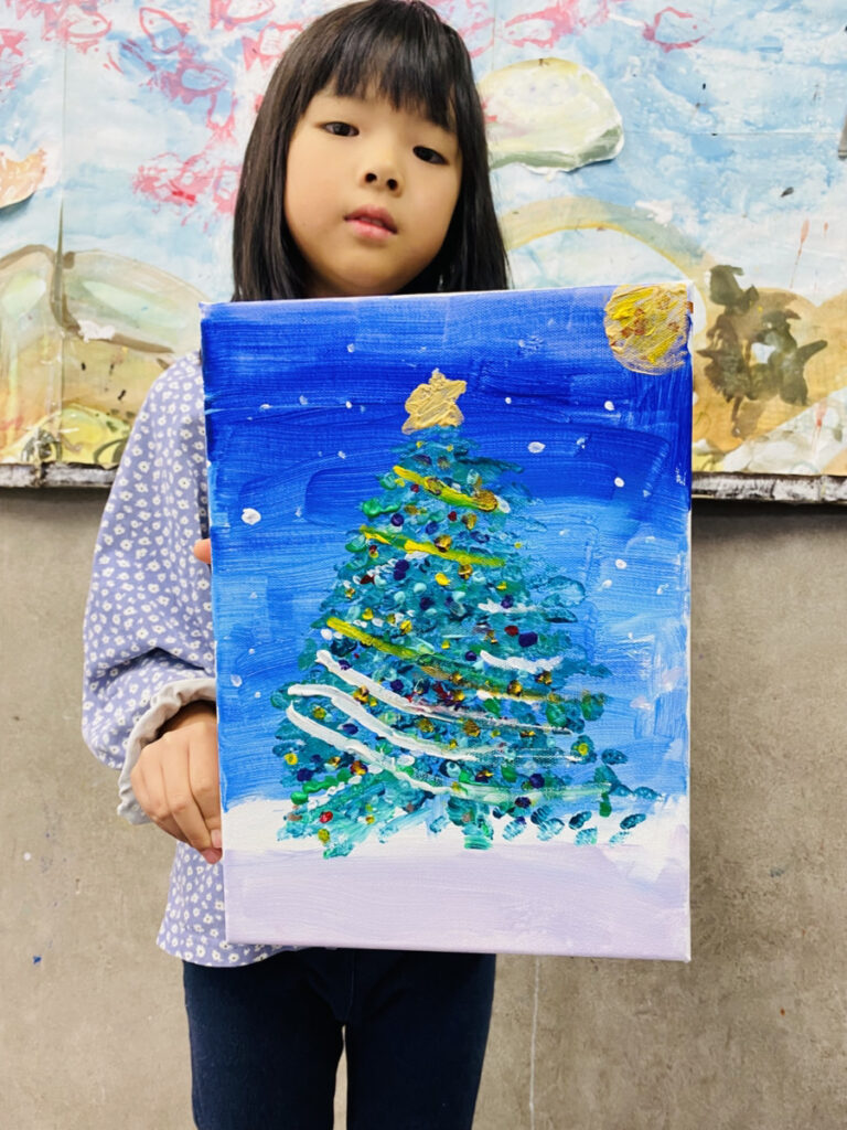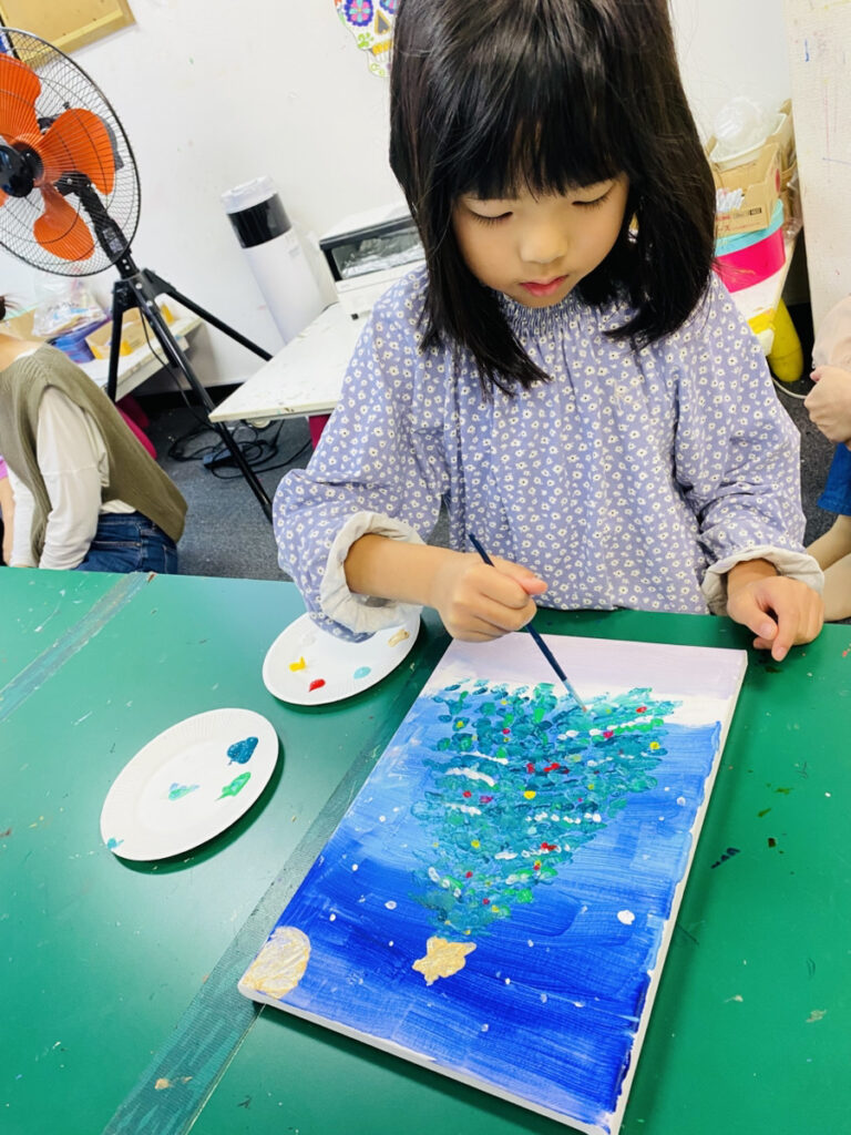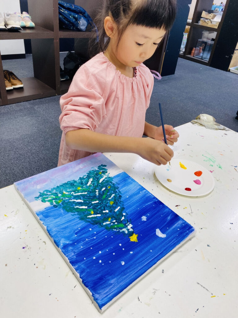 クリスマスツリーをキャンバスに描いてみよう!子供たちでも簡単なアクリル絵の具画の描き方をお教えしました!