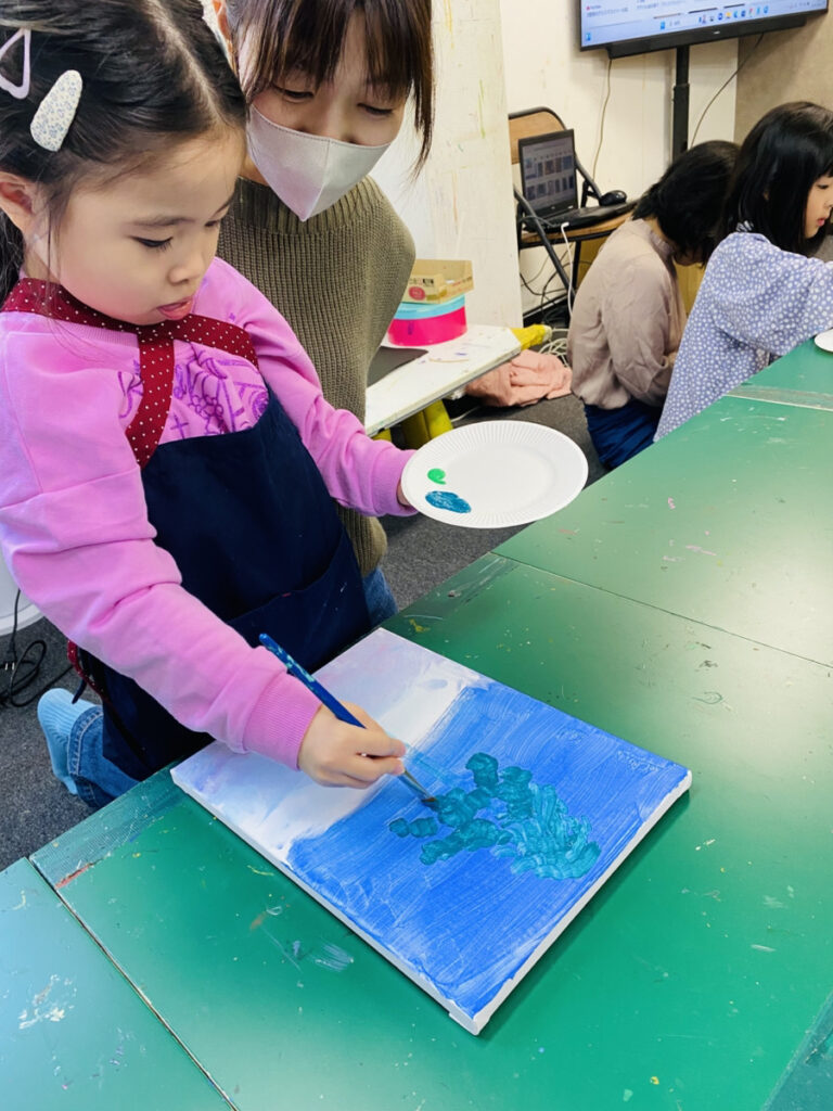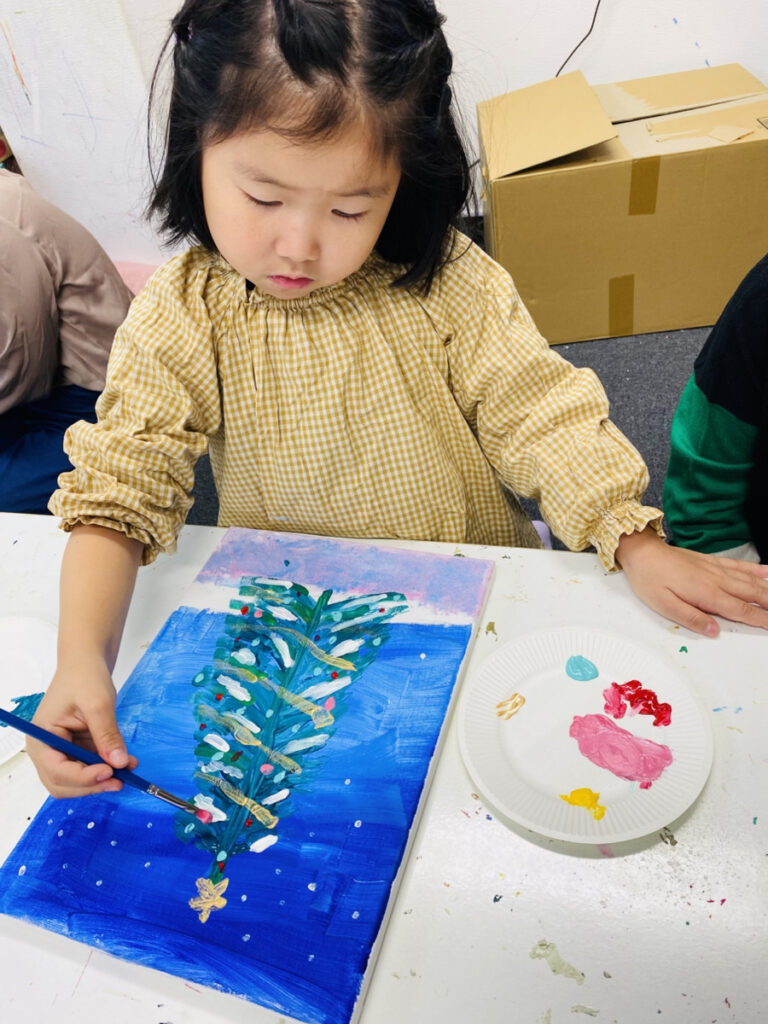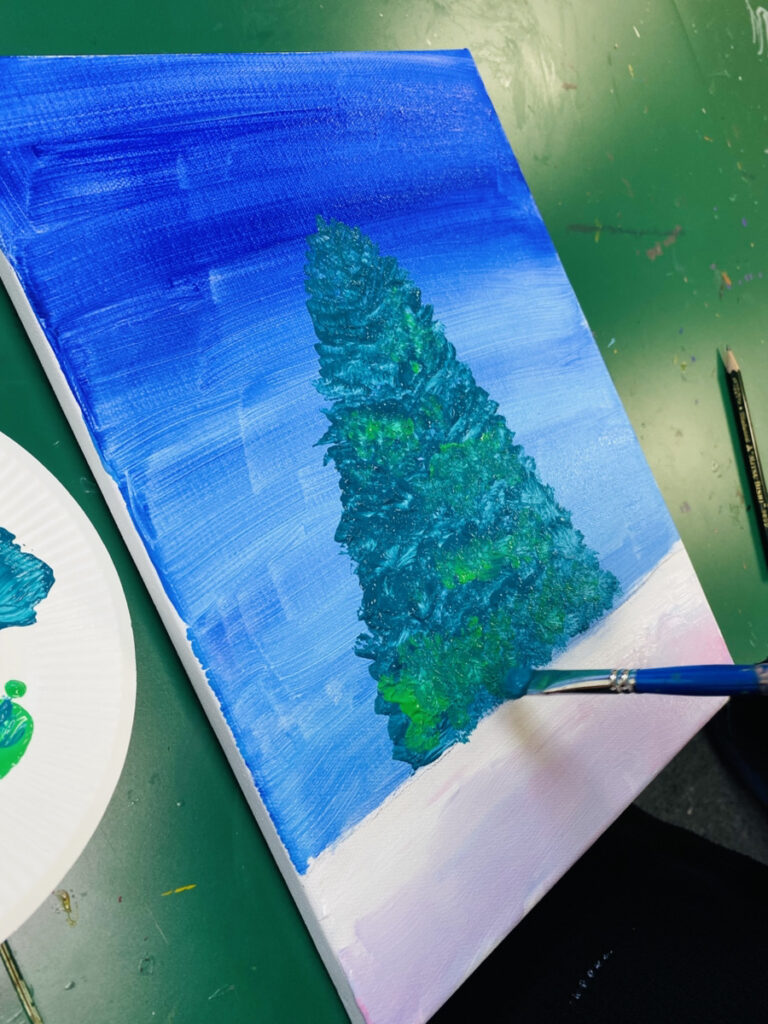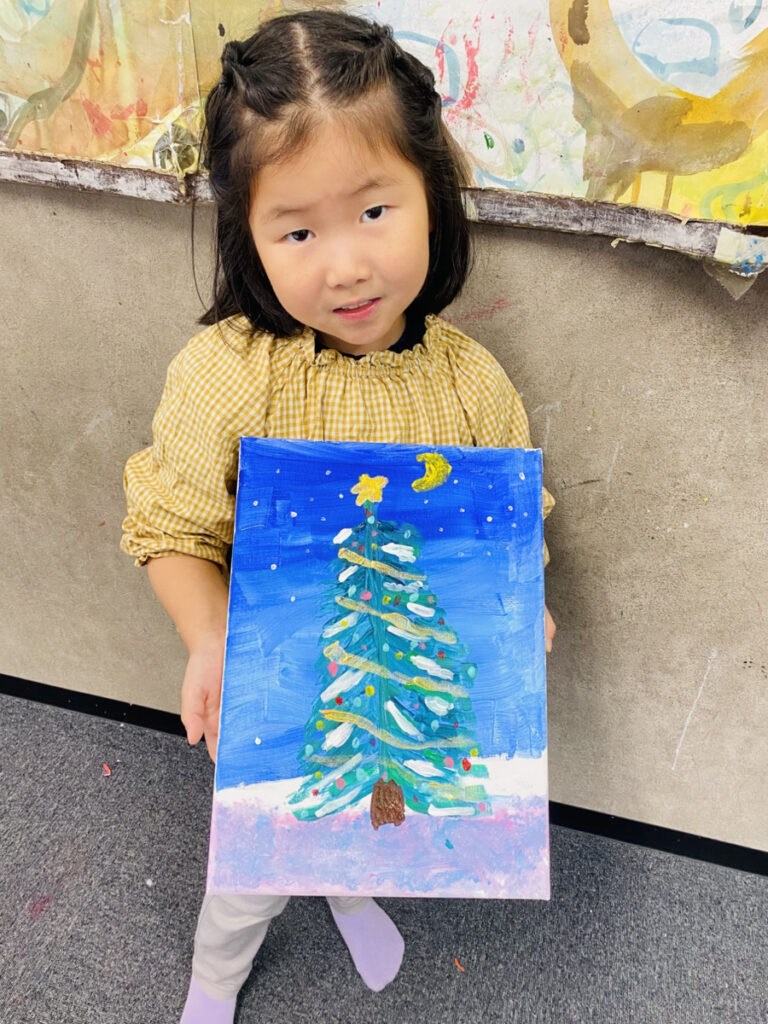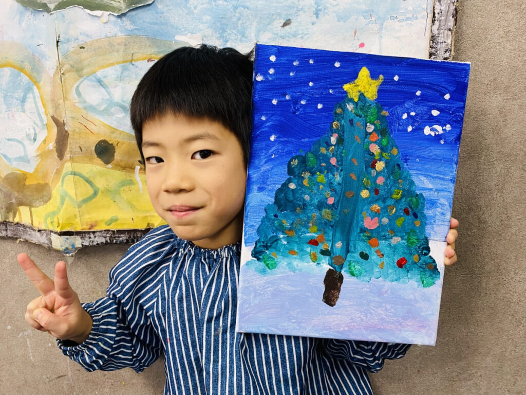 クリスマスツリーをキャンバスに描いてみよう!子供たちでも簡単なアクリル絵の具画の描き方をお教えしました!