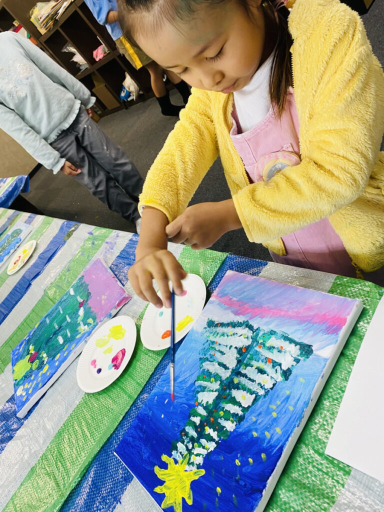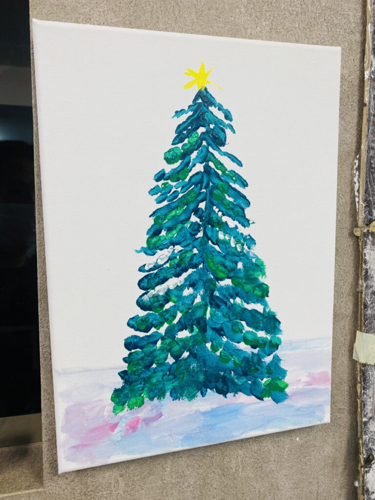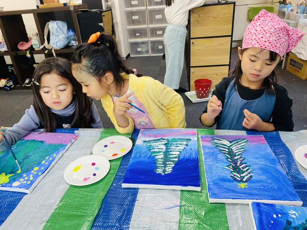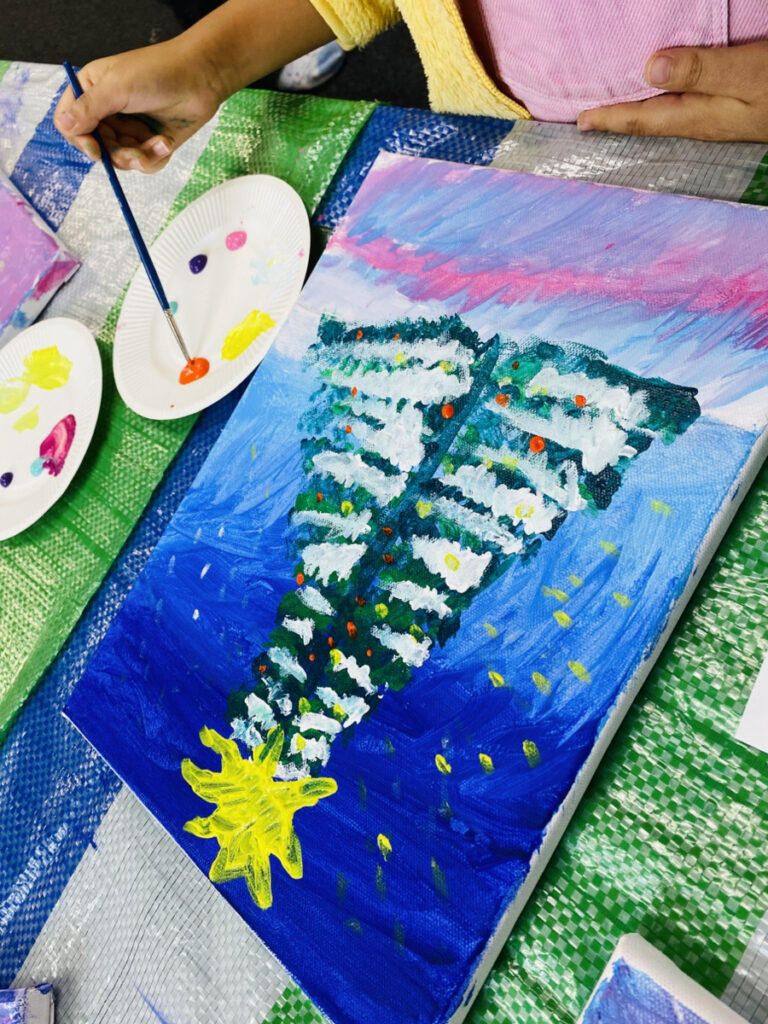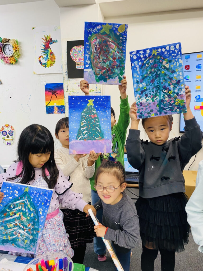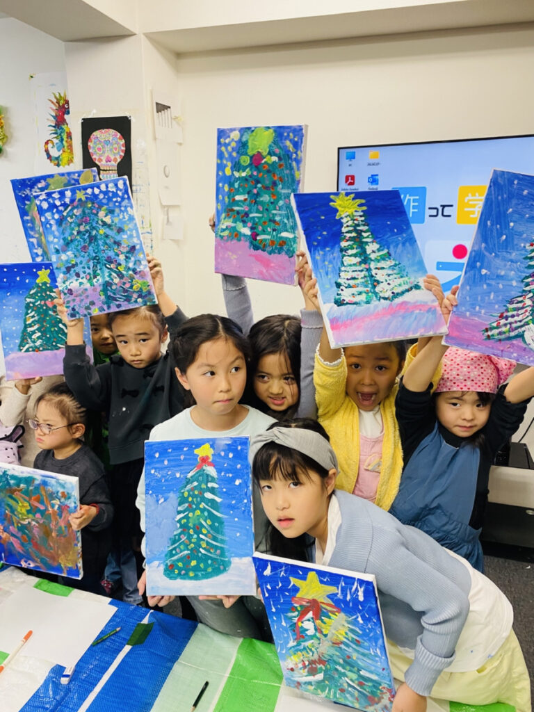 クリスマスツリーをキャンバスに描いてみよう!子供たちでも簡単なアクリル絵の具画の描き方をお教えしました!