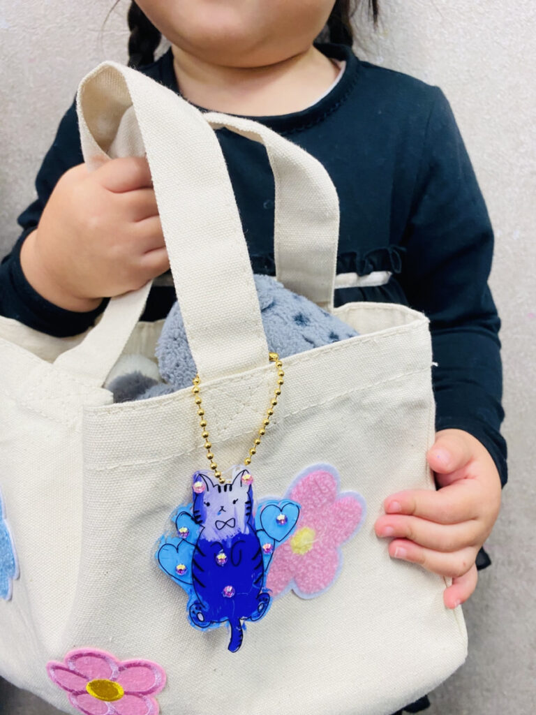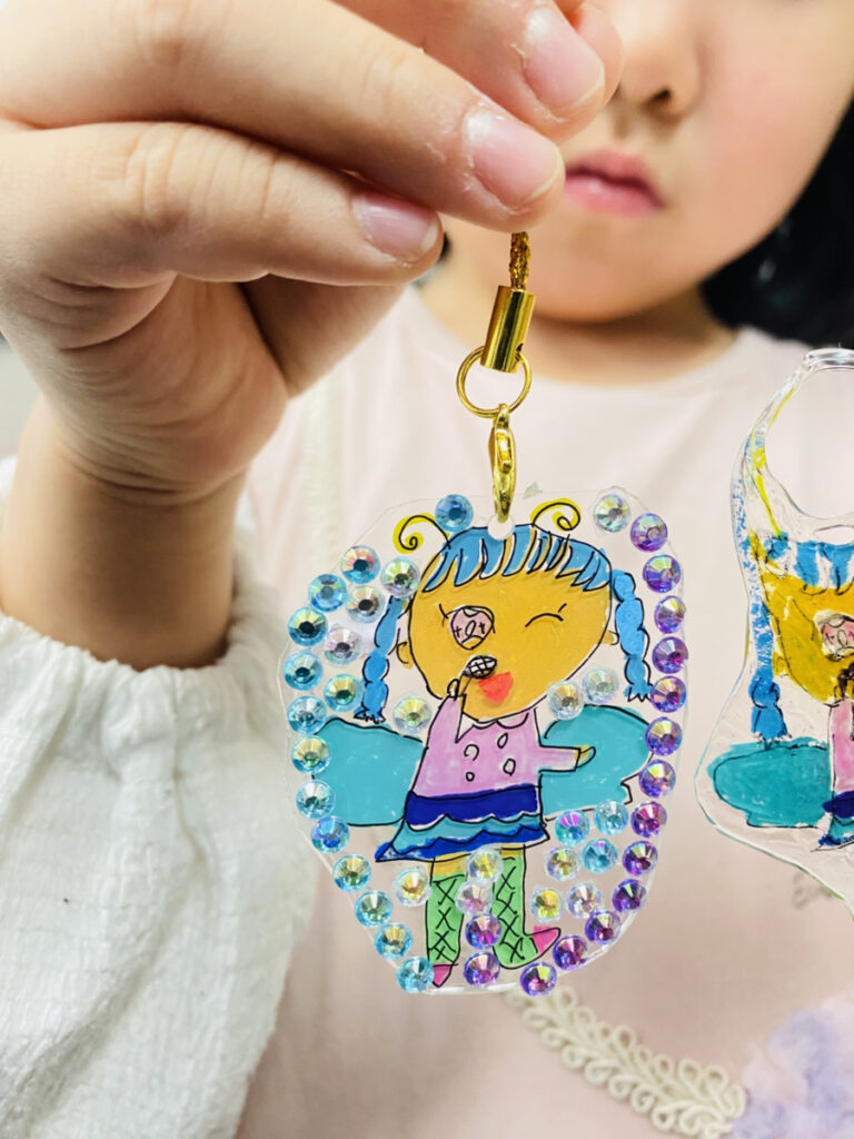 ジュエリーシールとプラ板をつかってつくる、小さいお子様でも簡単につくっていただけるオリジナルキーホルダーづくりを体験いただきました!好きなキャラクターやモチーフをプラ板に描きトースターで温めてつくります。少し冷やしてからジュエリーシールでお好みにデコレーション!キラキラ輝く手作りキーホルダー。愛着をもって使っていただけると嬉しいです!▼