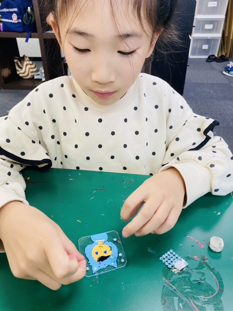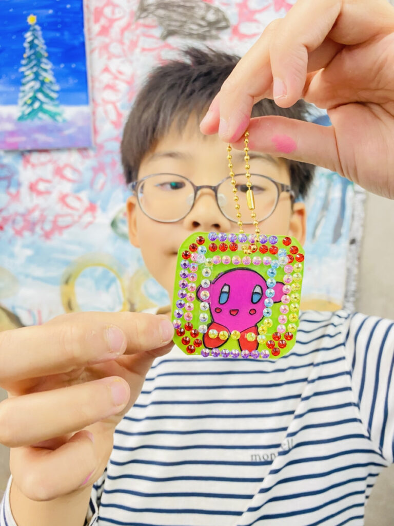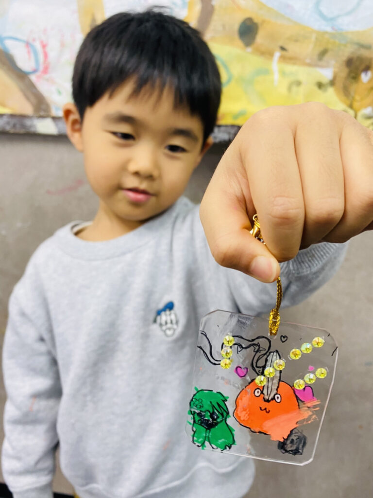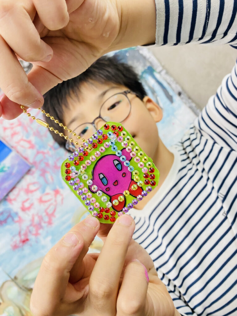 ジュエリーシールとプラ板をつかってつくる、小さいお子様でも簡単につくっていただけるオリジナルキーホルダーづくりを体験いただきました!好きなキャラクターやモチーフをプラ板に描きトースターで温めてつくります。少し冷やしてからジュエリーシールでお好みにデコレーション!キラキラ輝く手作りキーホルダー。愛着をもって使っていただけると嬉しいです!▼