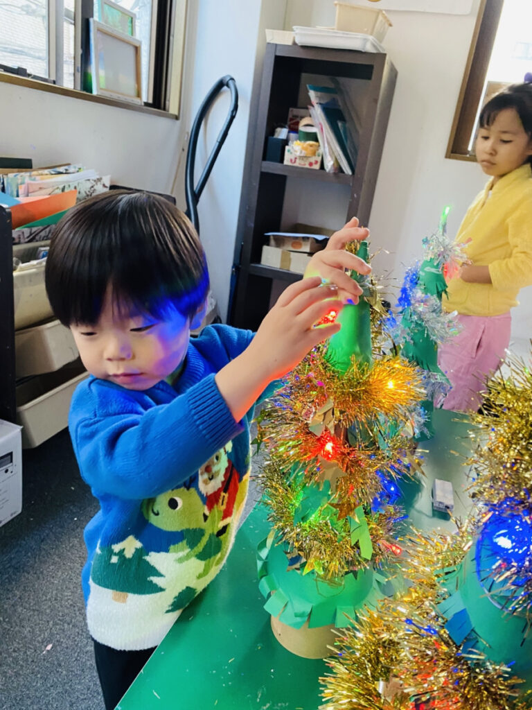 本日は、現教室での最後のレッスンとしまして「光り輝く手作りのクリスマスツリー」を体験いただきました!最後のレッスンに沢山の子供達にお越しいただきありがとうございました!本日の手作りクリスマスツリーをご自宅に飾ってご家族皆さんで楽しんでいただければ嬉しいです!