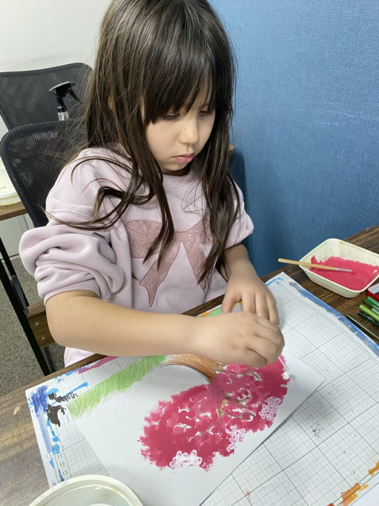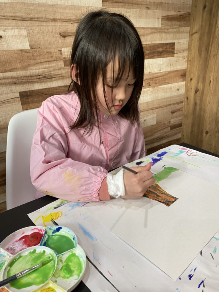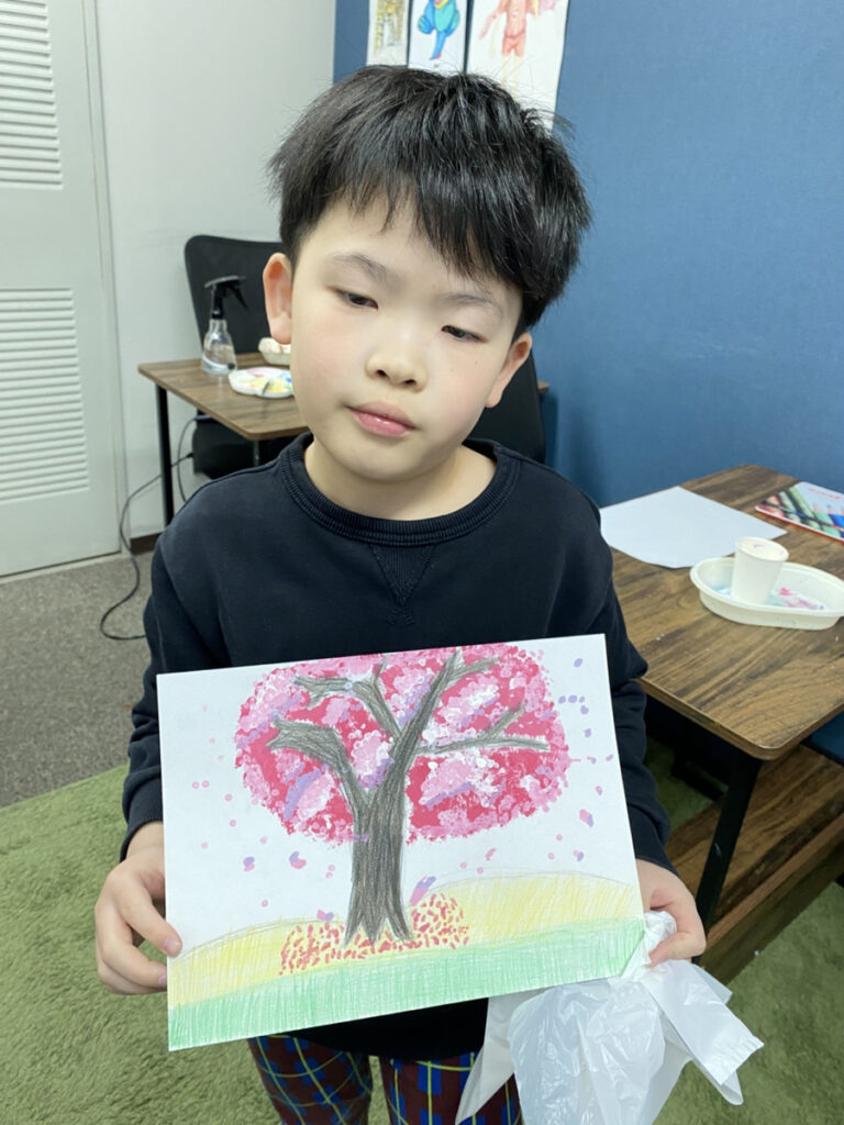 本日のモネスク土曜クラスでは、桜の木の制作に取り組みました。