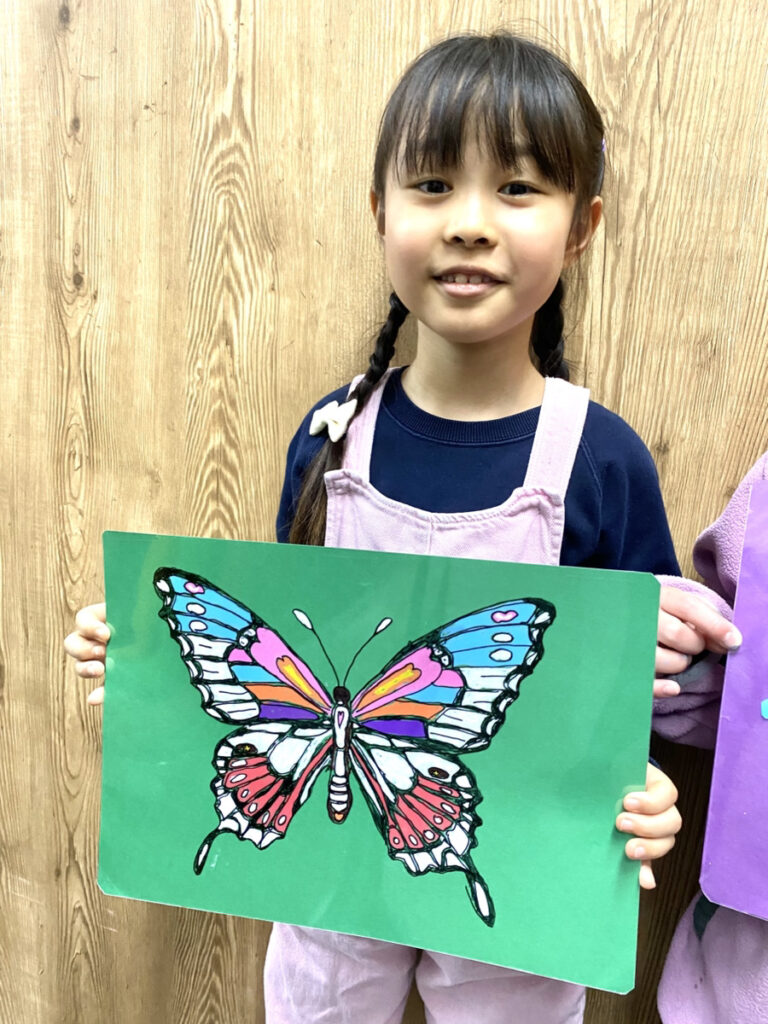 それぞれの個性が光るカラフルな蝶たちは、まるで春の空へと飛び立っていくかのよう。教室いっぱいに、明るくやさしい季節の雰囲気が広がる素敵な時間となりました!