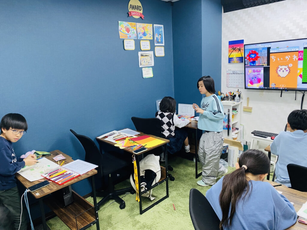 新しい教室は、以前よりも落ち着いた規模の空間となり、現在は小学生の生徒さんを中心に少人数制でクラスを行っています。人数が少ない分、教室全体も穏やかな雰囲気で、子どもたちはそれぞれ自分のペースで制作や絵画に集中して取り組んでいます。