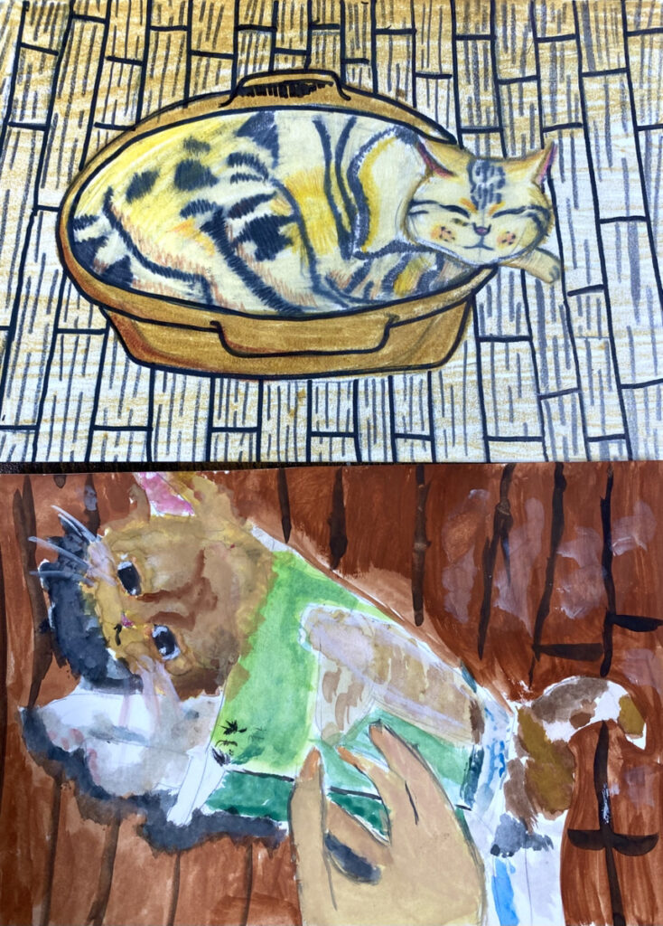 【「猫」をテーマにしたはがき絵コンクール応募作品】▲